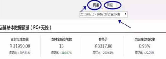 重点指标,商家成长不知道大家有没有细心看,这里也是我们做诊断通常比较注意的点。这个周环比,月环比,这4个数据是你店铺最重要的。